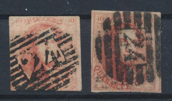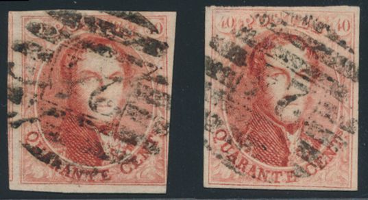 1277 0 imageN° 12 and 12A "40c. vermilion", fully margined, both with cancel (8-bars), vf (OBP €220)(Image 1) (All Images)