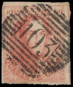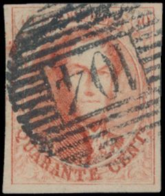 1299 0 imageN° 12 "40c. vermillion", right incised, with Pt.350-Templeuve, not described in COBA, specialists valuation, vf/f(Image 1) (All Images)