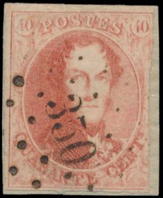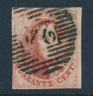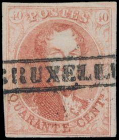 1298 0 imageN° 12 "40c. vermillion", fully margined, cancelled name stamp "Bruxelles" in frame black, vf (OBP €90)(Image 1) (All Images)