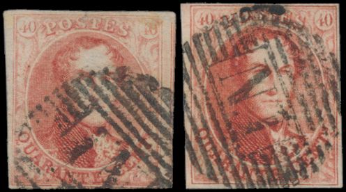 1300 0 imageN° 12 and 12A "40c. vermillion", both fully margined with ambulantory cancel "NI", vf (COBA €32)(Image 1) (All Images)