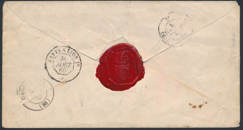 1288 imageN° 12A '40 cent. carmine' with upper border (but incised on other sides), Dep. P.90 Ostend, to France 29 Aug 1860, PD in black frame with transit stamp Calais, f/to be checked (OBP €120 + Coba €10)(Image 1) (Image 2)