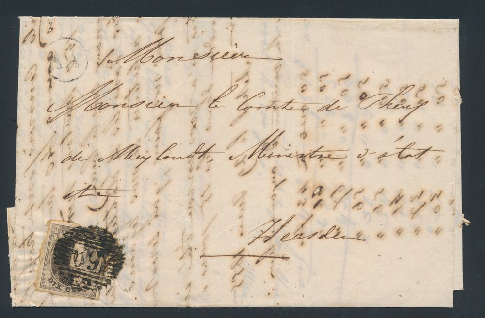 1326 imageN° 6, fully margined, on letter with afst. P.69 Overpelt 29 June 1855 + PO Box letter AA Achel, to Heusden, f/to be checked (OBP €17.50 + Coba €25)(Image 1) (Image 2)