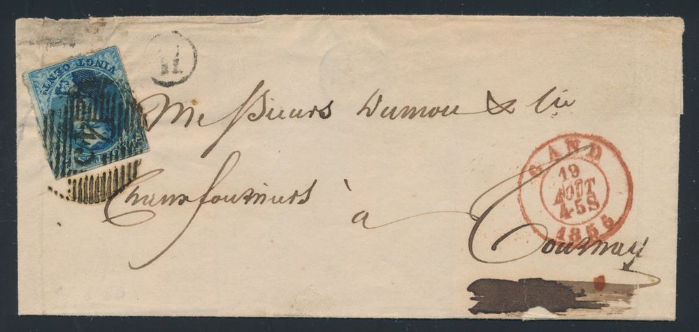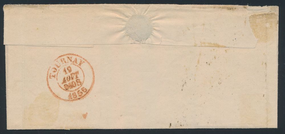 1328 image1856 N° 7 "20c. blue", letter without contents, cancelled P.45-Gand, fully margined, dated 19 August 1856, to Tournay, post box "H" in circle black, Melsen, manuscript "Vurste" in the document, vf(Image 1) (Image 2)