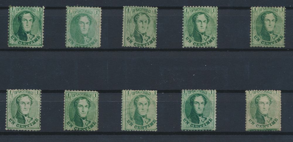 1342 og/ng imageN° 13 "1c. green", accumulation of 10 values, to be checked on quality, perfs and colours, to be checked(Image 1) (All Images)