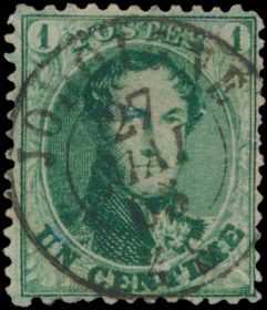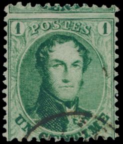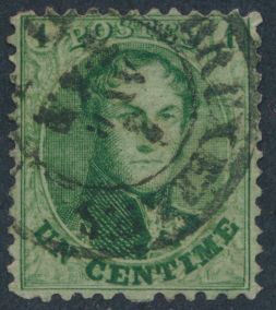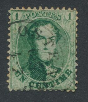 1355 0 imageN° 13A "1c. green", decent centring, with irregular right-hand serration, nice cancel Dca "Jodoigne", dd. 27 mai 65, with griffes in margin, vf/f (OBP €40)(Image 1) (All Images)