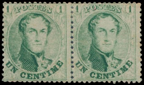 1359 og imageN° 13B "1c. green", pair with first hinge remainder, very fresh stamp, vf (OBP €100)(Image 1) (All Images)