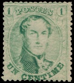 1351 og imageN° 13A "1c. green", nice fresh stamp, with minute hinge remainder, trace of left neighbour, for specialist, vf (OBP €150)(Image 1) (All Images)