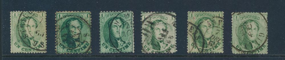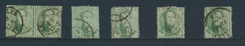 1348 0 imageN° 13, 13b, 13A, 13Aa and 13Ba, five different versions of "1c. green" perforated, quality to be checked, vf/f/to be checked(Image 1) (All Images)