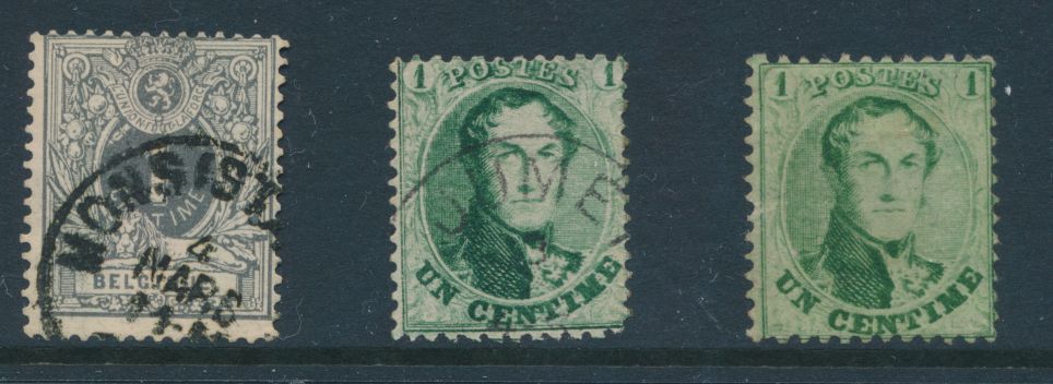 1346 0 imageN° 13 "1c. green", 1 without gum, 1 with cancel "Jumet", N° 43 (cancel "Mons" Station), vf/f/to be checked (OBP €225)(Image 1) (All Images)