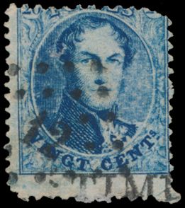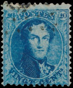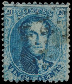 1389 0 imageN° 15A "20c. blue", margin inscription "TIMBRE" postes, with pun stamp P.12-Anvers, f/to be checked(Image 1) (All Images)