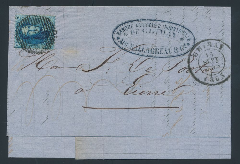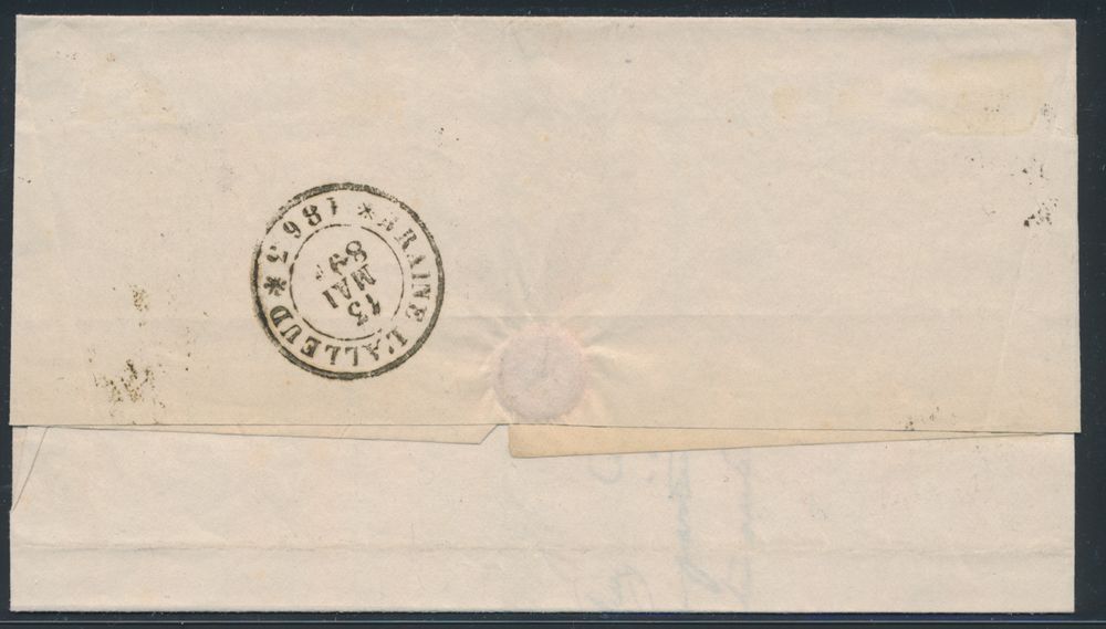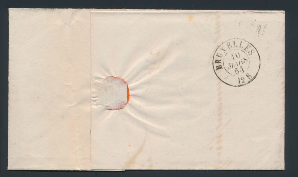 1395 imageN° 16 '40 cent. crimson' on letter from Antwerp P.4, to Paris 24 Nov 1863, stamp strongly offset perfs (OBP €75)(Image 1) (Image 2)