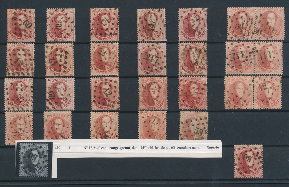 1399 0 imageN° 16 "40c. crimson", 19 items and 1 pair, nice plating, vf/to be checked (OBP +€800)(Image 1) (All Images)