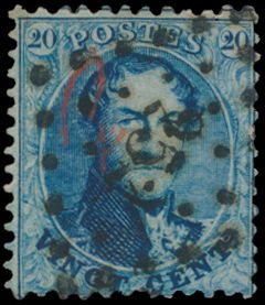 1398 0 imageN° 16-Cu "40c. crimson", cancel Pt.12-Anvers, with reduced printing and interrupted above frame line, vf(Image 1) (All Images)
