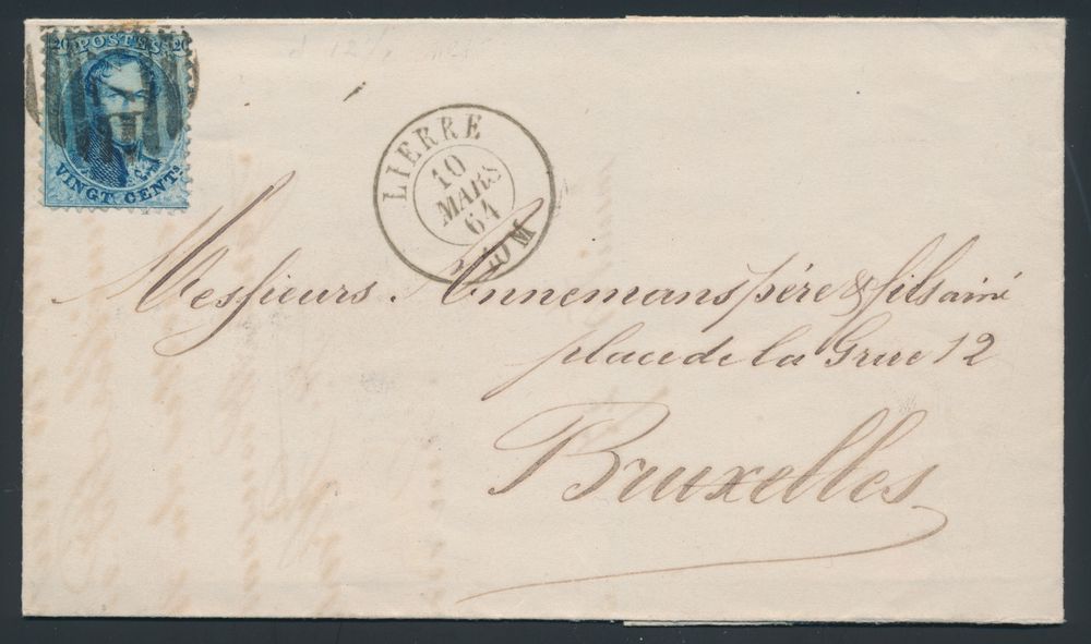 1392 image1863 N° 15 "20c. blue", on letter with contents from Chimay (cancel P.27), dated 15 September 1863, to Lierre, vf(Image 1) (All Images)