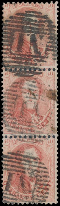 1396 0 imageN° 16 "40c. carmine", in upright strip of 3, cancelled "N.I.", rare, vf(Image 1) (All Images)
