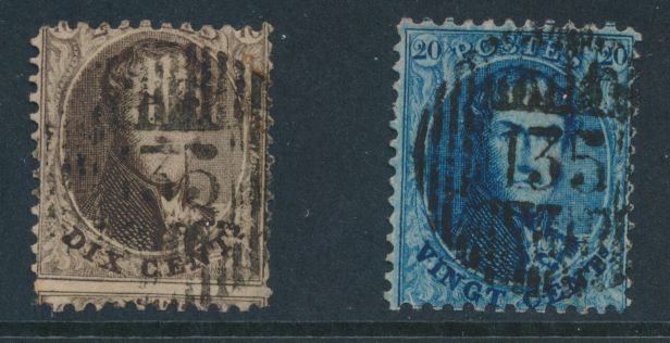 1383 0 imageN° 14A and 15A, single cut close, cancelled P.143-Lanaeken (8-bars), f/to be checked (COBA €55)(Image 1) (All Images)