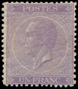 1496 og/(nhc imageN° 21Aa "1fr. violet", fresh colour, but retouching on all sides and heavy hinge remainders, f/to be checked (OBP €5,250)(Image 1) (All Images)