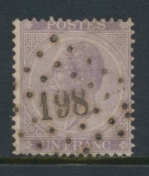 N° 21A "1fr. violet", cancel Pt.198-Jodoigne, vf (OBP €110)(Image 1)