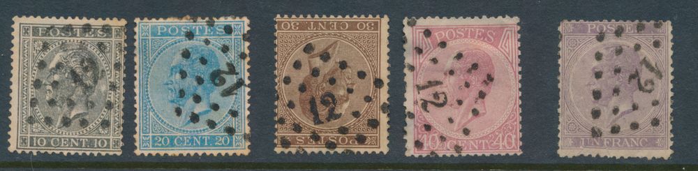 N° 17/21 "Full set", all with Pt. 12-Anvers cancel, n° 21 is