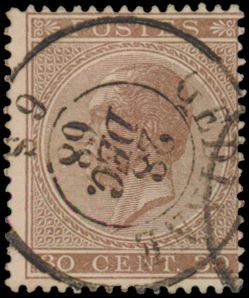 N° 19A "30c. bister", with central cancel Dca. Gedinne, dated