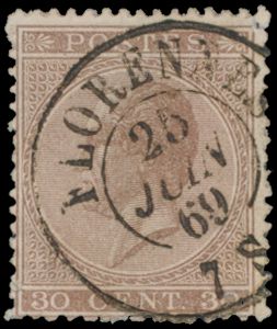 N° 19A "30c. bister", with central cancel Dca. Florennes, dd.