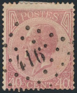N° 20 "40c. pale pink", PT 416 "Bruxelles" (Rue Rogier), nice