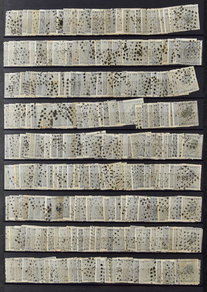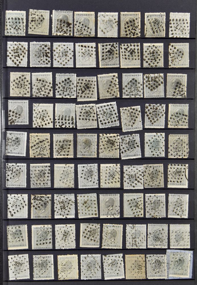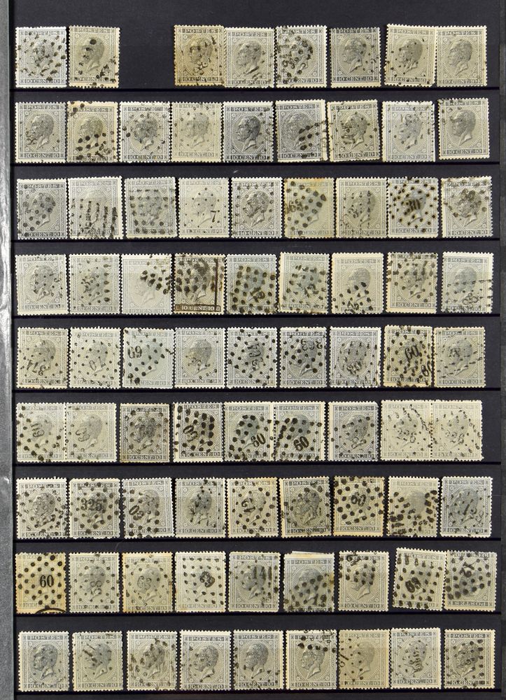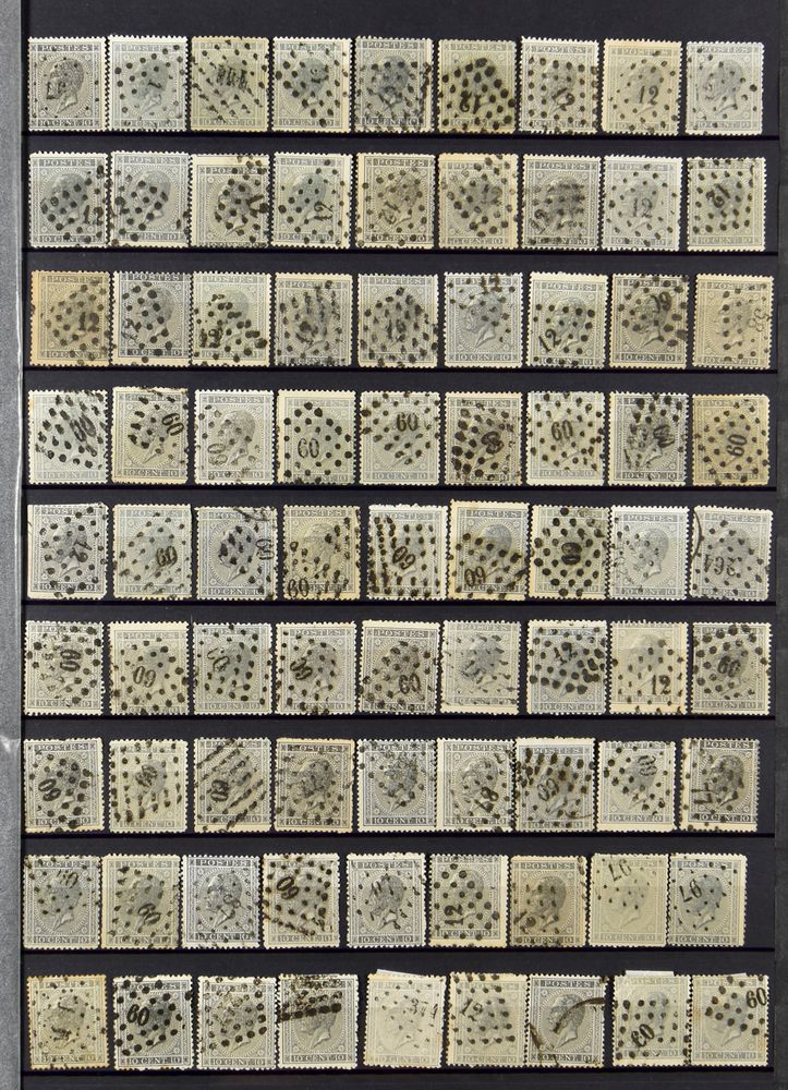 N° 17 (1048x) "1c. grey", items mostly dotted cancels,