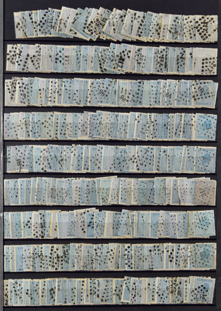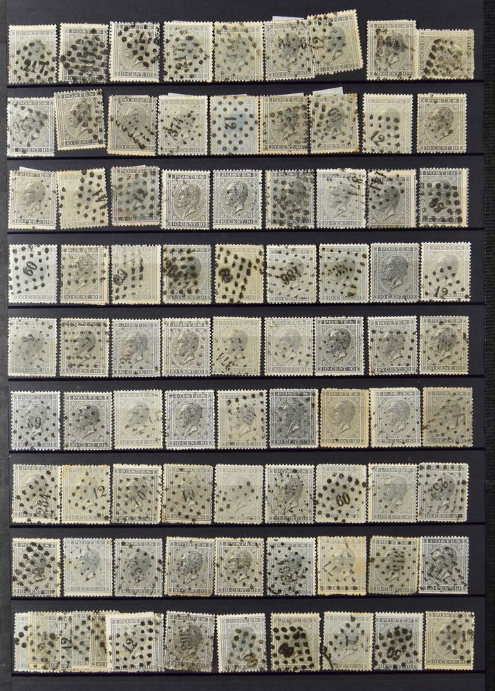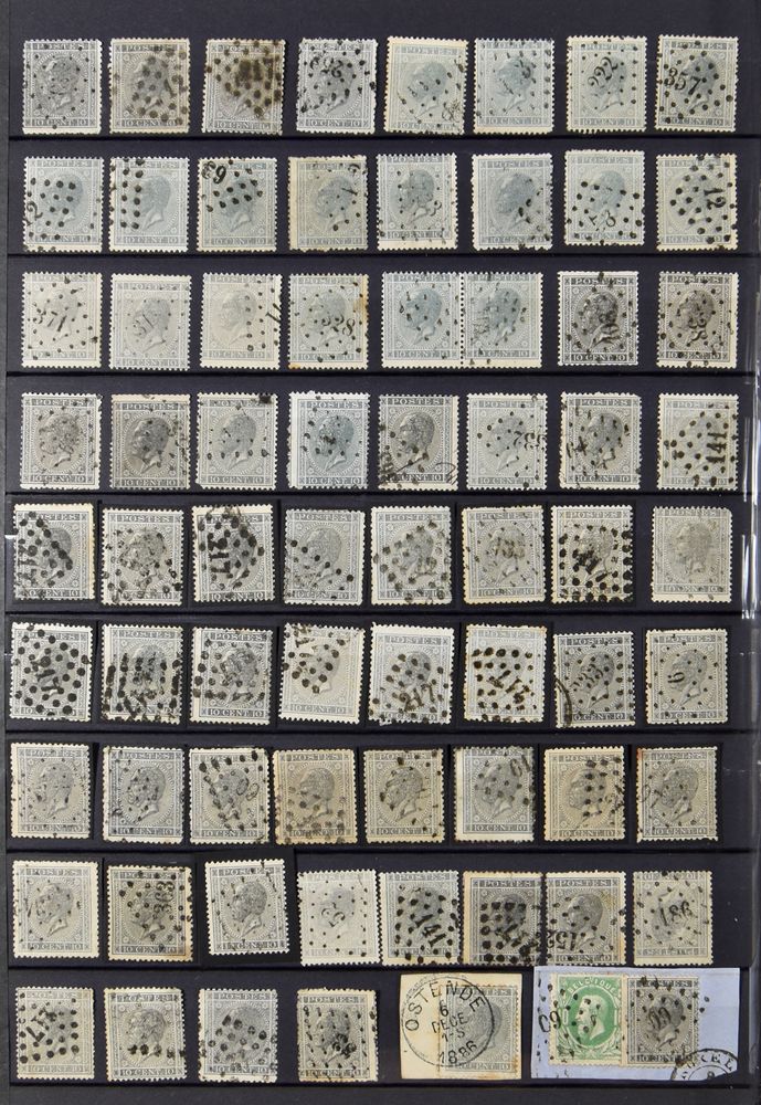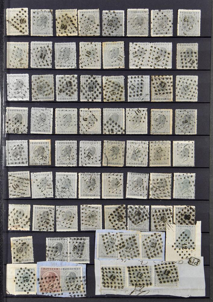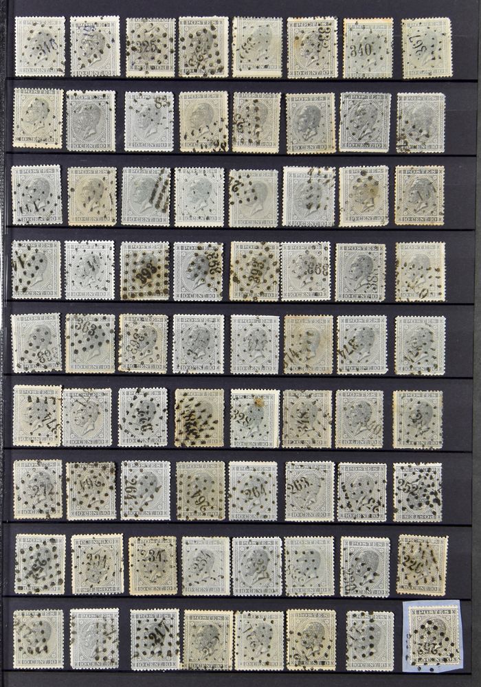 N° 17 (1048x) "1c. grey", items mostly dotted cancels,