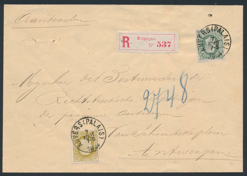 1682 image3 registered letter covers, with different registration fees (from "20c." and "25c."), all within 30km in the first weight class, different indication of "Recommande": italicised in parallelogram, manuscript and with sticker, vf(Image 1) (Image 2) (Image 3) (Image 4)