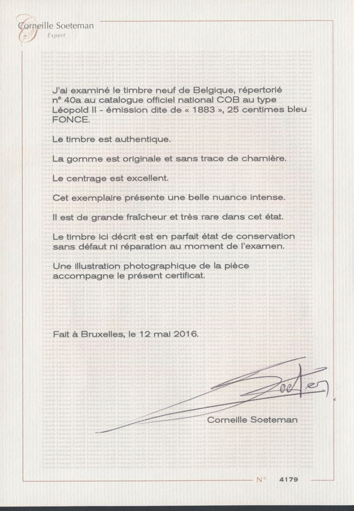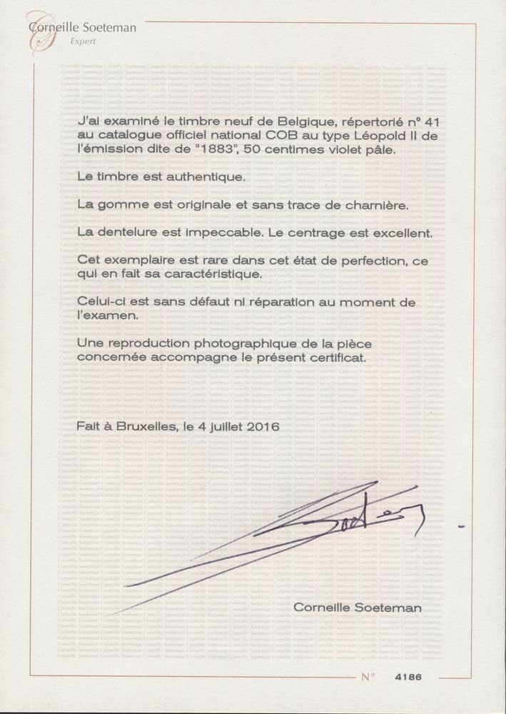 1695 nh imageN° 41 "50c. light violet" in quasi perfect centring and very fresh with photo certificate Soeteman dated 04/07/2016, vf (OBP €1,385 + 150% = €3,450) - see photo cover(Image 1) (Image 2)
