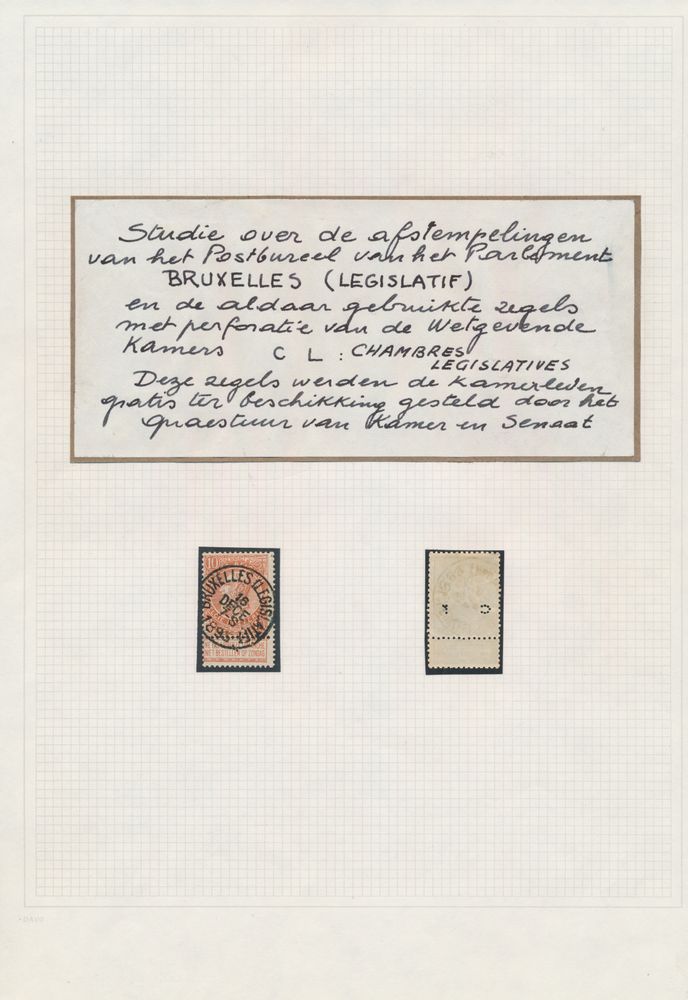 1820 0 imageStudy collection on the cancellations of the post office of the Parliament of Brussels (Legislatif), with the stamps used there with the perforation "C L" (Chambres Legistatives), beautiful collection of more than 100 stamps, vf/f/to be checked(Image 1) (Image 2) (Image 3) (Image 4) (Image 5) (Image 6)