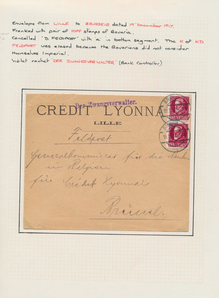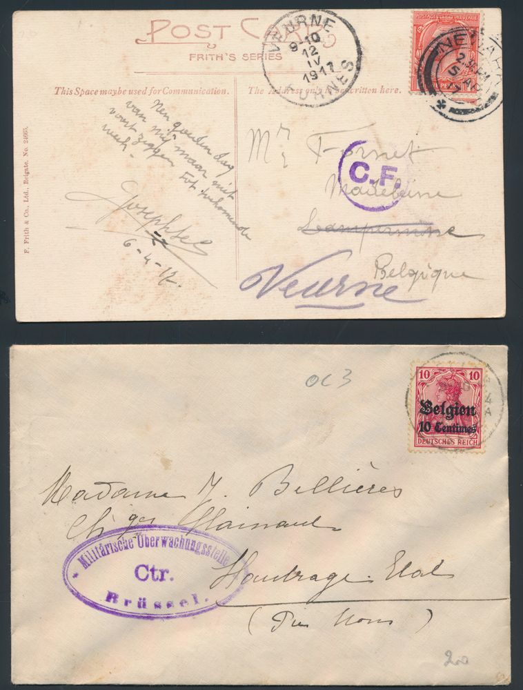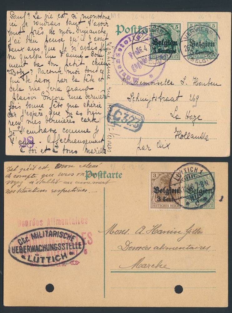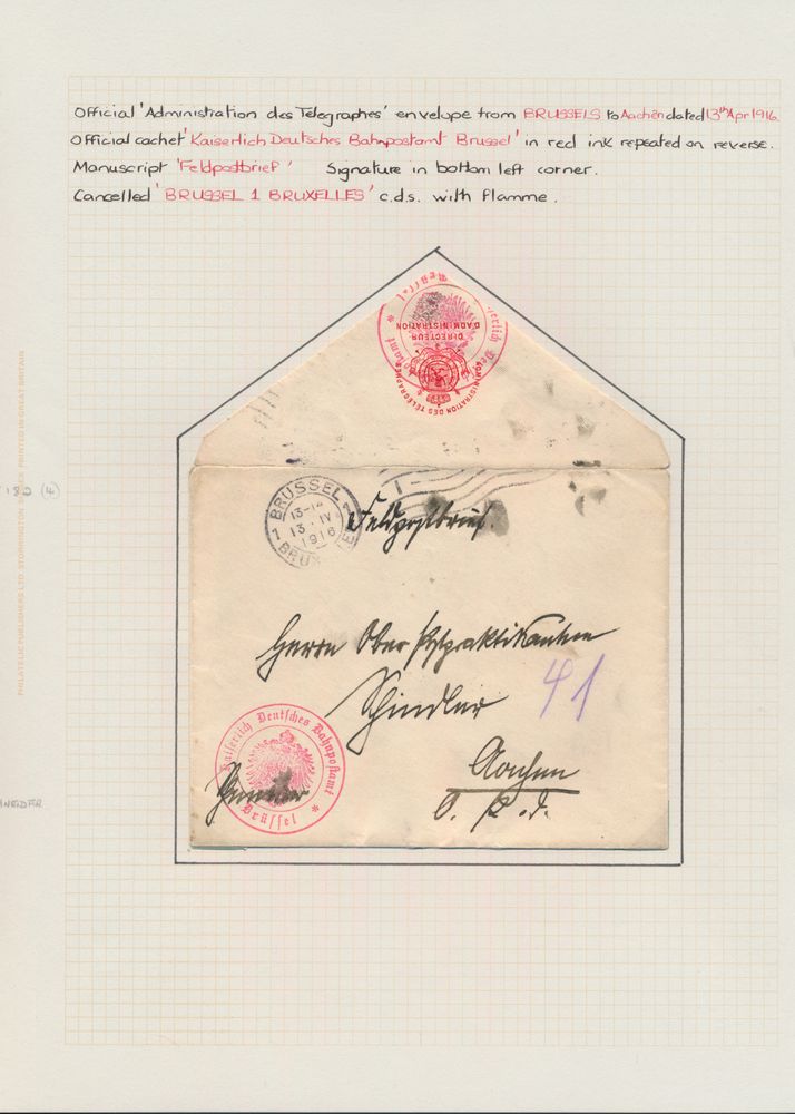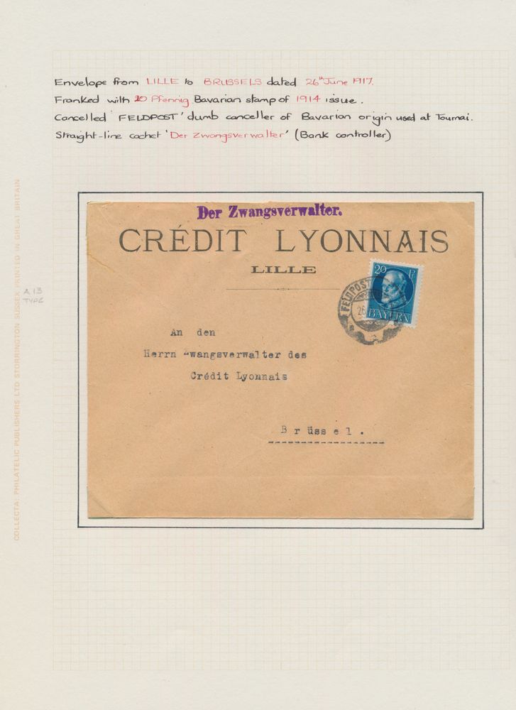 1957 MIX imageNice collection of 27 documents, W.E. I, with many special postmarks such as: "Kaiserliches Gouvernement", letter stamp in blue: "Kaiserlich Deutsches", "Bahnpostamt Brussel" in red, "Der Zwangsverwalter" in purple, etc., all documents are available online, with explanations, beautiful, for the specialist, vf(Image 1) (Image 2) (Image 3) (Image 4) (Image 5) (Image 6) (Image 7) (Image 8) (Image 9) (Image 10) (Image 11) (Image 12) (Image 13) (Image 14) (Image 15) (Image 16) (Image 17) (Image 18) (Image 19) (Image 20) (Image 21) (Image 22) (Image 23) (Image 24) (Image 25) (Image 26) (Image 27)