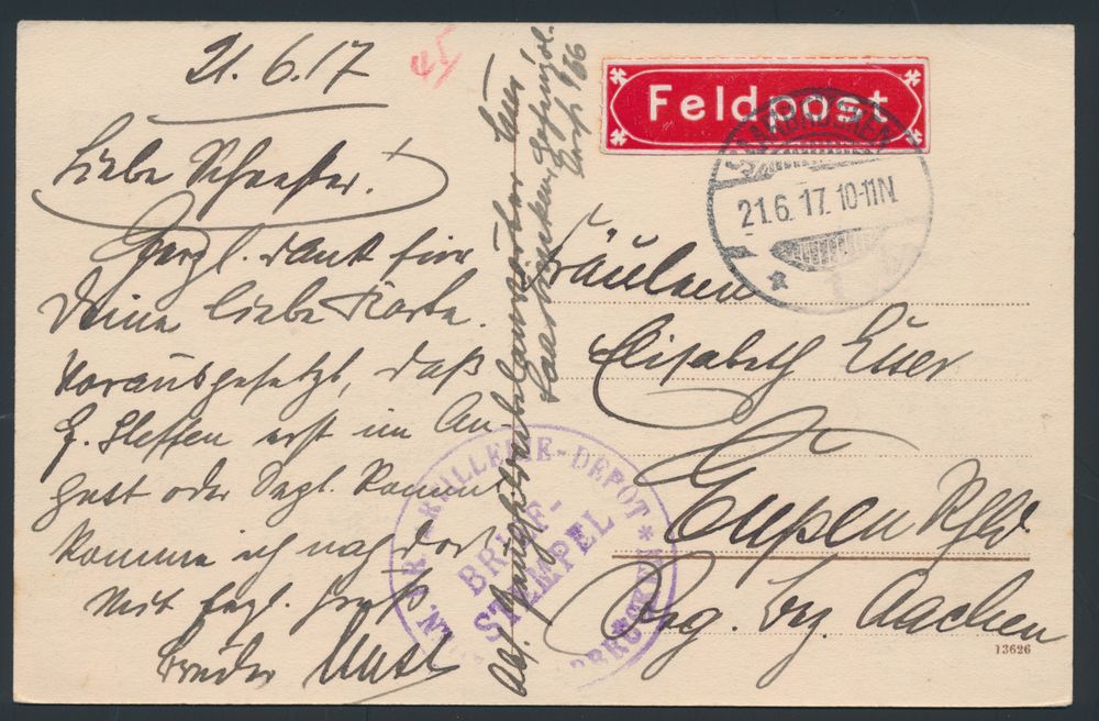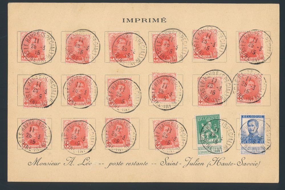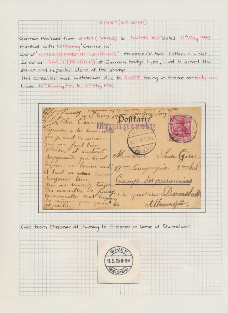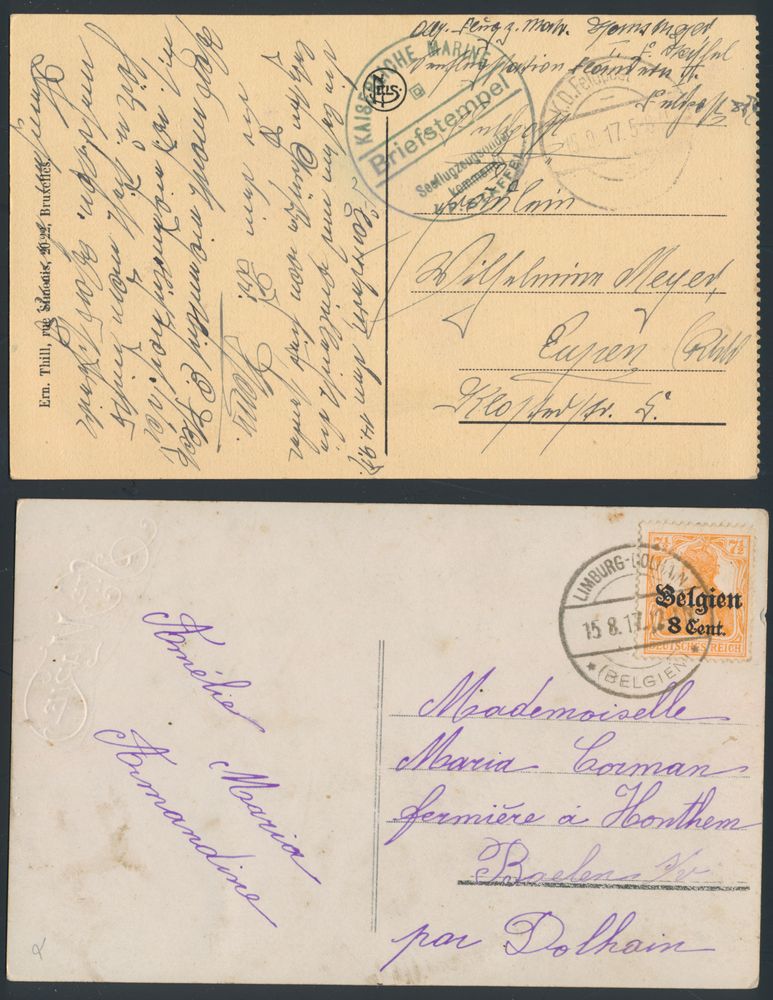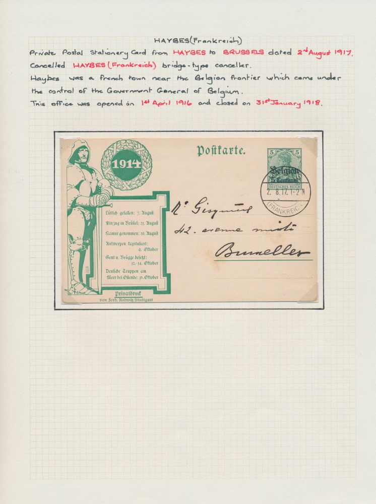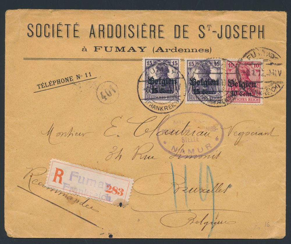 1957 MIX imageNice collection of 27 documents, W.E. I, with many special postmarks such as: "Kaiserliches Gouvernement", letter stamp in blue: "Kaiserlich Deutsches", "Bahnpostamt Brussel" in red, "Der Zwangsverwalter" in purple, etc., all documents are available online, with explanations, beautiful, for the specialist, vf(Image 1) (Image 2) (Image 3) (Image 4) (Image 5) (Image 6) (Image 7) (Image 8) (Image 9) (Image 10) (Image 11) (Image 12) (Image 13) (Image 14) (Image 15) (Image 16) (Image 17) (Image 18) (Image 19) (Image 20) (Image 21) (Image 22) (Image 23) (Image 24) (Image 25) (Image 26) (Image 27)