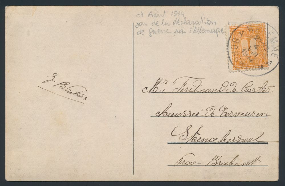 1943 ZK image1914, 4 August, day of Germany's declaration of war, on photo card, from Waremme, with soldiers of the 2nd regiment at Waremme station, vf(Image 1) (Image 2)