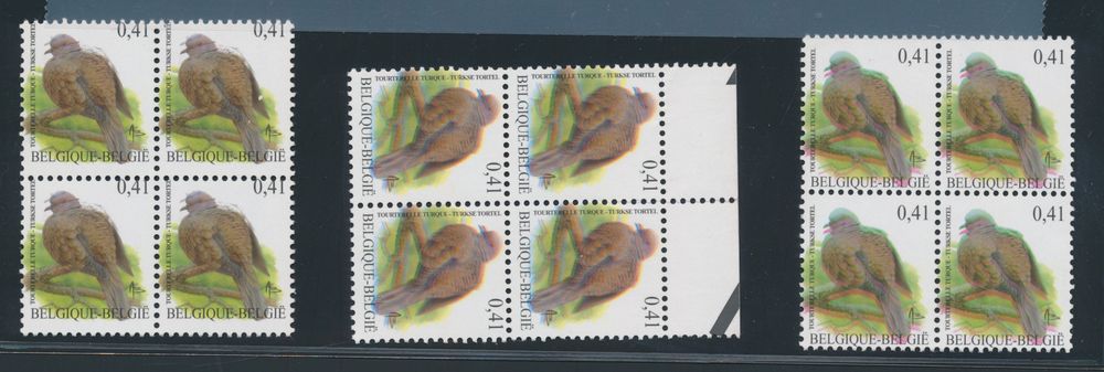 2036 nh imageN° 3135-Cu "0.41€ Turkish turtle dove" in block of four, three times with different curiosity "double printing", vf(Image 1)