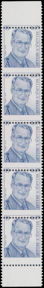 2022 nh imageN° 2886-Cu "Albert II 19fr." in vertical strip of 5, with spectacularly misaligned perf, vf(Image 1)