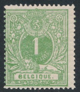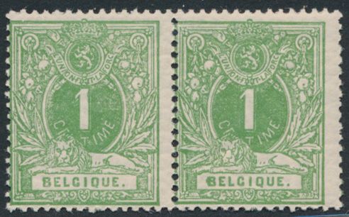 2058 nh imageN° 26a-V8 (Varibel) "1c. yellow-green" with "Letter B of BELGIQUE distorted" in pair, vf (OBP ++€130)(Image 1)