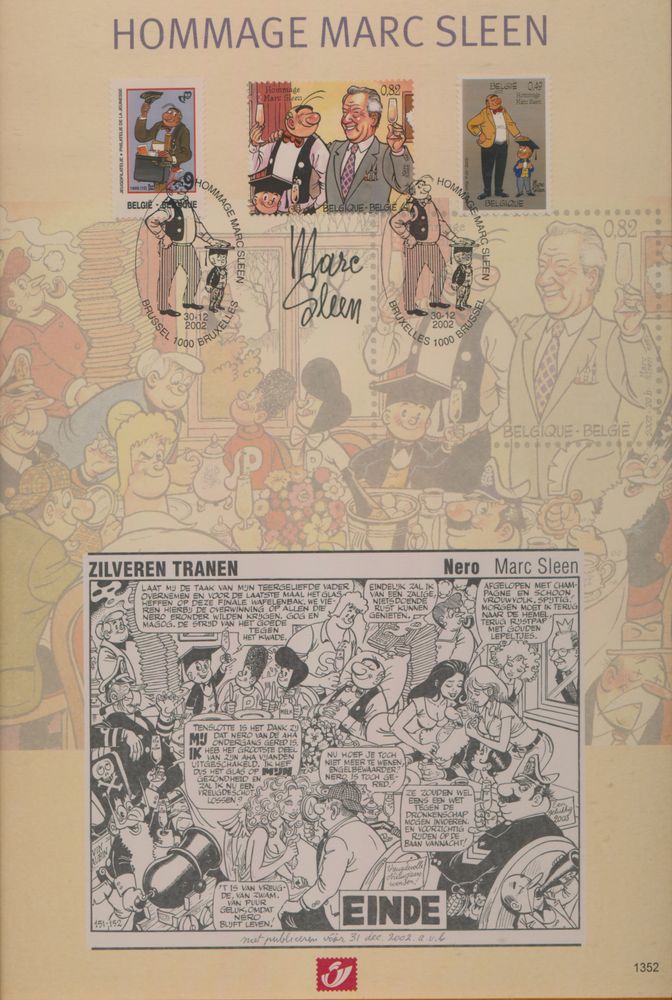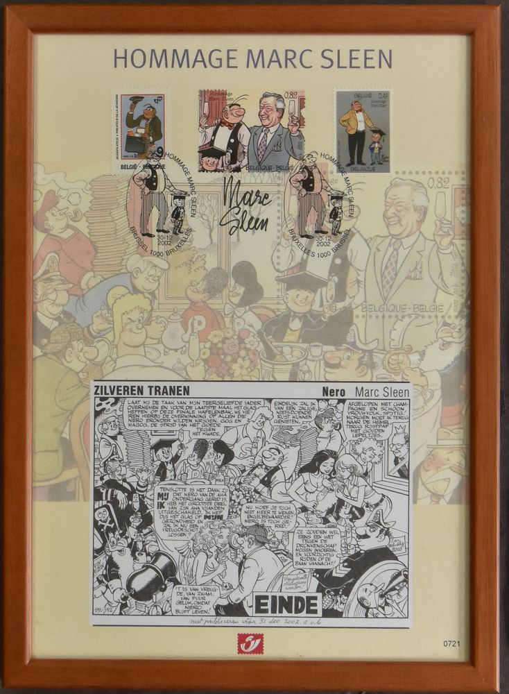 2051 imageN° 3145 Tribute sheet (A4) Marc Sleen, cancelled 30 December 2002, no. 1352, beautiful condition, framed, see photo, vf(Image 1)