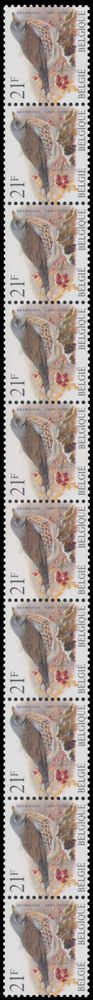 2042 nh imageR 89a-Cu "21fr. fieldfare" with "strip of 10 with two numbers (4 digits) on the back - contiguous", serial numbers 2105 and 2120, spectacular, vf(Image 1) (Image 2)