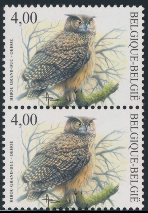 2041 nh imageN° 3270-Cu "€4.00 Eagle owl", upright pair, with curiosity "very faint colour". (colour shades), vf(Image 1)