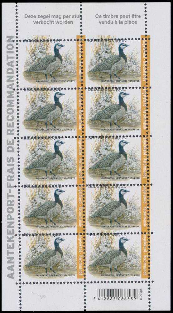2043 nh imageN° 4912-Cu "Barnacle goose, note vignette" in sheetlet of 10, with clear shifted perf, rare, vf(Image 1)