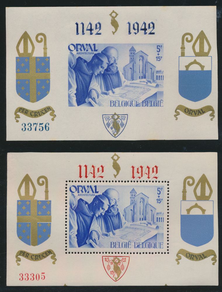 2187 nh/og/0 image1924/1941, nice accumulation including BF 1 (fold in margin), BF 7, music chapel and Orval souvenir sheets, vf/f.(Image 1) (Image 2) (Image 3) (Image 4)
