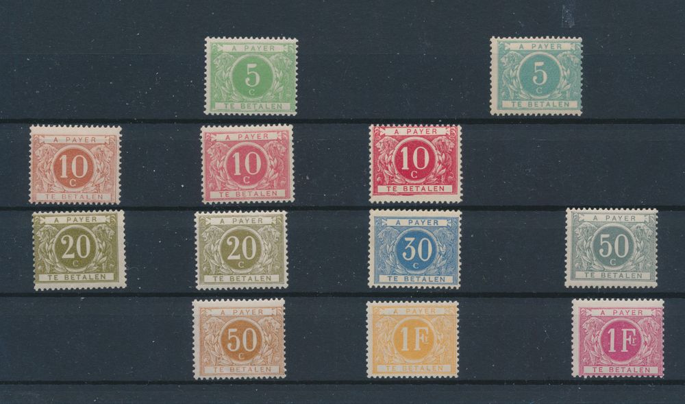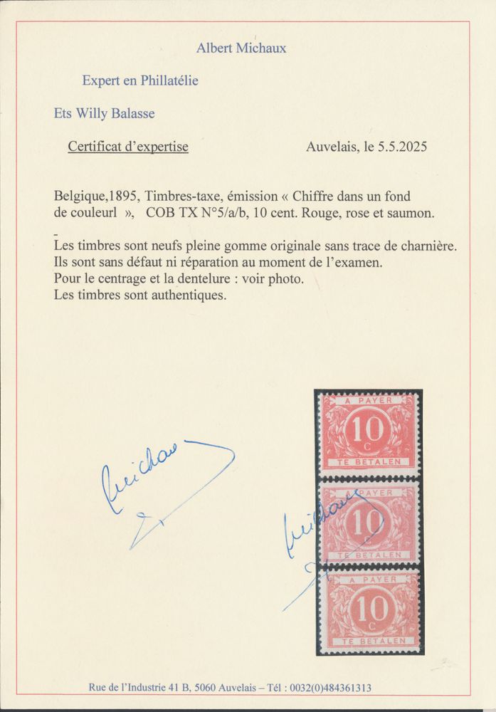 2240 nh imageTX 3/11 "Complete set" with some beautiful colour shades such as TX 3b "blue-green" and TX 5b "salmon pink" with Balasse photo certificate dated 05.05.2025, 13 stamps in total, vf (OBP +€860)(Image 1) (Image 2) (Image 3)