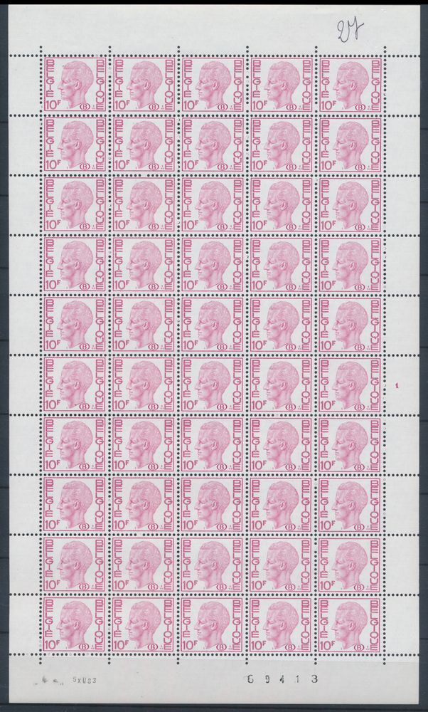 2232 nh imageS 70 P "Elström 5 F violet" (Full sheetlet of 50) with 6 printing errors, beautiful.(Image 1)