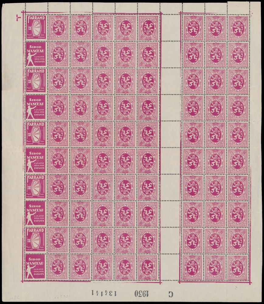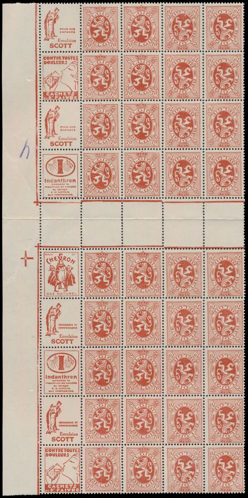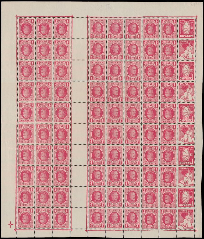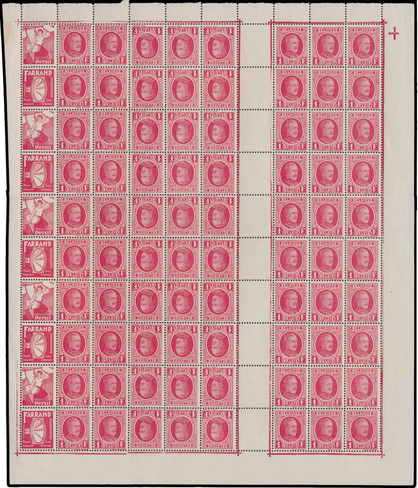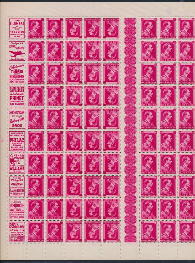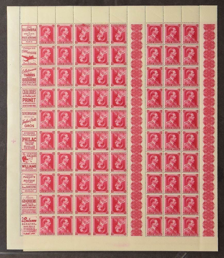2276 nh imagePuc 143/71 A + B 'Leopold III 1 Fr carmine' (full sheet) beautiful.(Image 1)