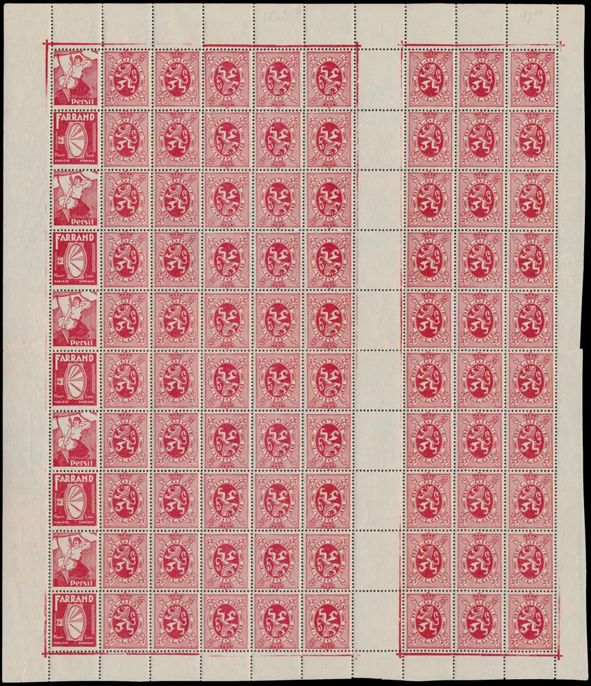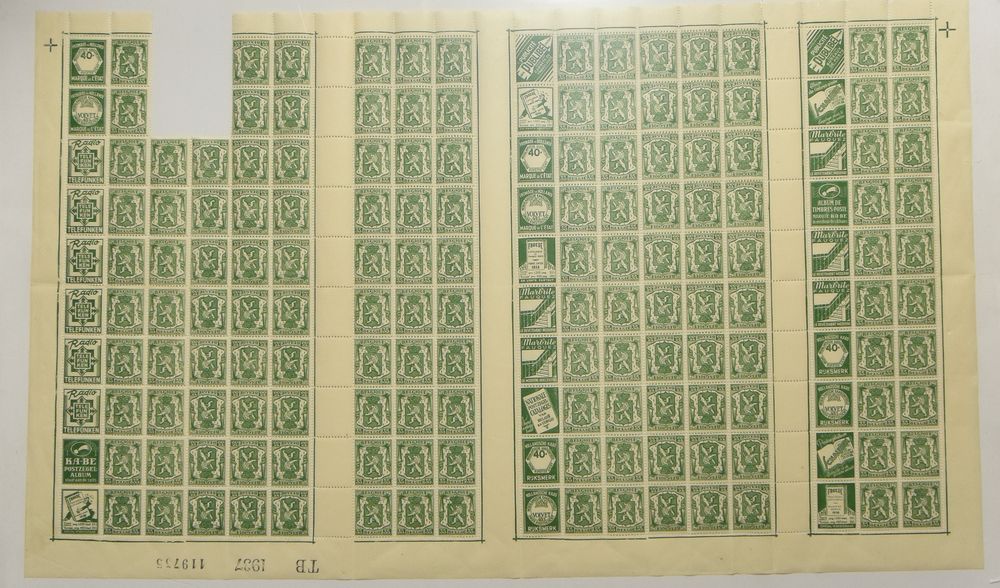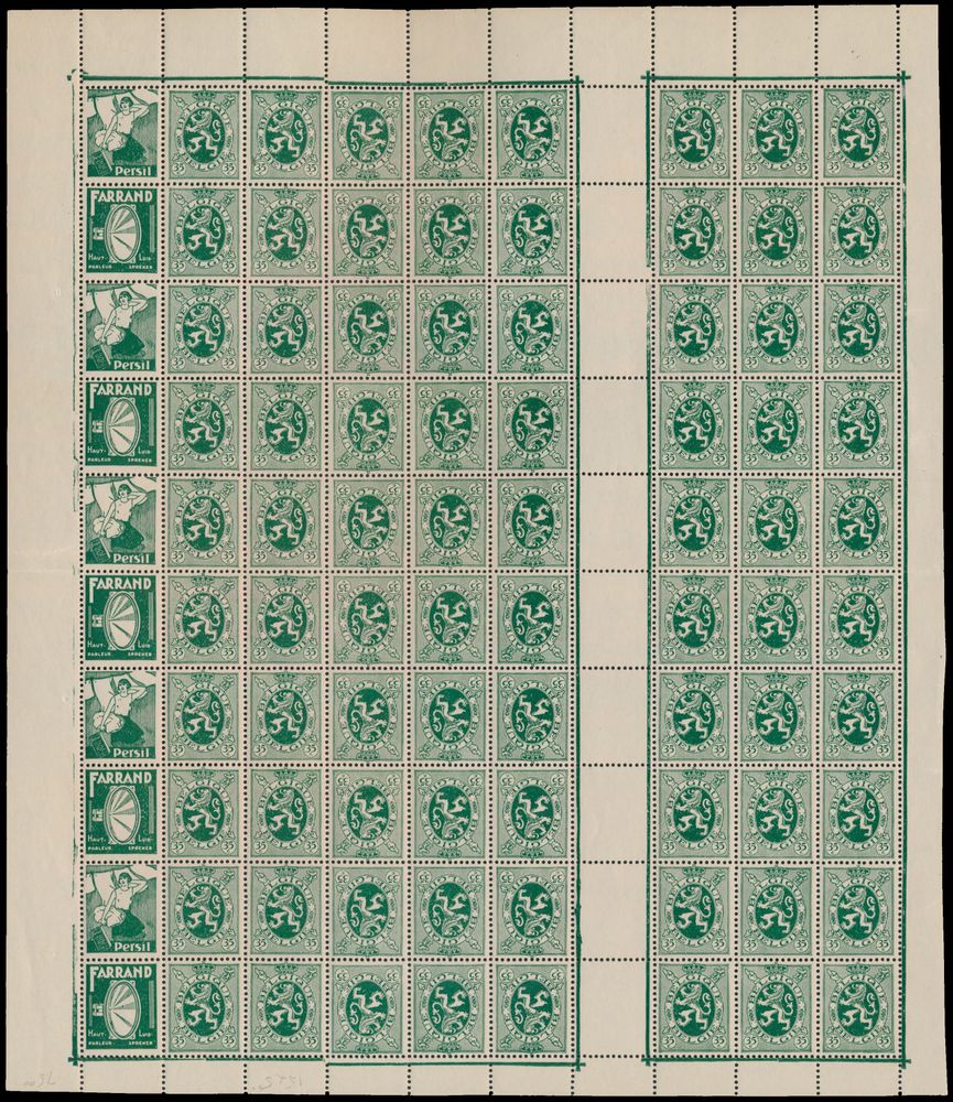 2277 nh imagePUc 143/71, in full sheet, combination A+B and KT 22, cancellation 'HB 1944 927292' and with circle cancellation '10 and 16', vf, mentioned in OBP 'There are full sheets with Puc stamps, these have considerable added value, vf(Image 1)