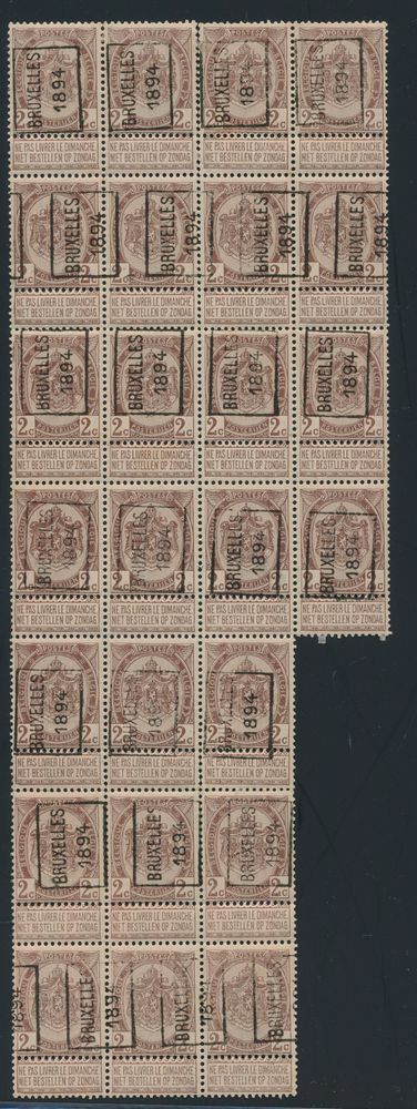 2279 nh/og imagePRE 14A "2c. brown Brussels 1894" in sheet section of 25, hand-printed, vf/f(Image 1)