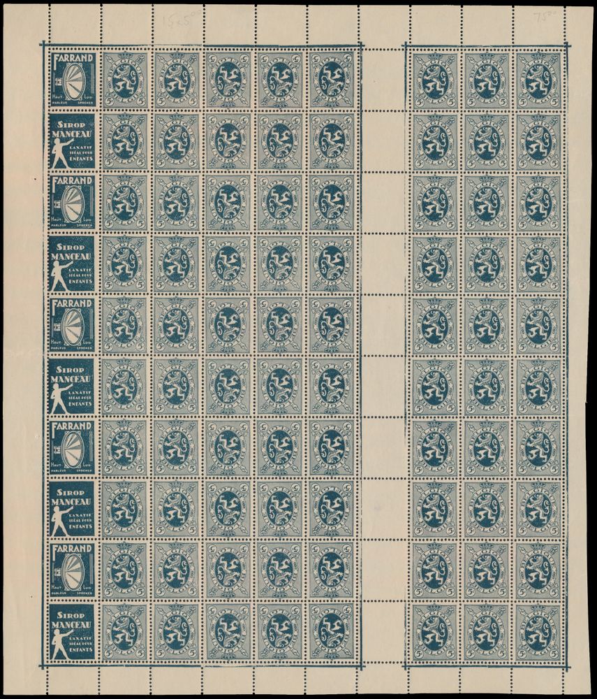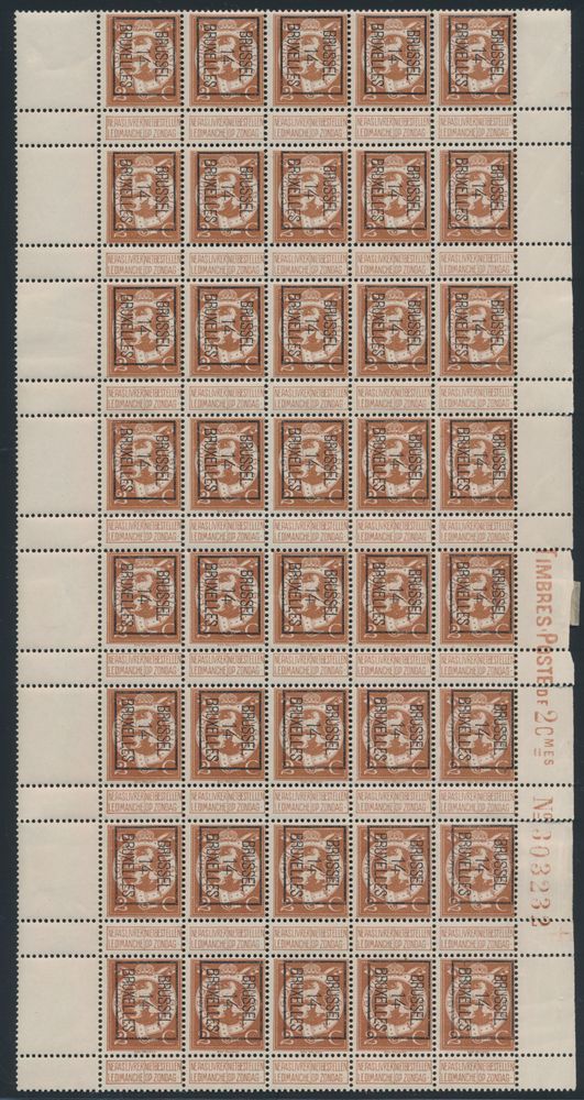 2280 nh/og imagePRE 50 B "2c. brown Brussels 14" in sheet section with margin inscription, loose here and there on perf, vf/f(Image 1)