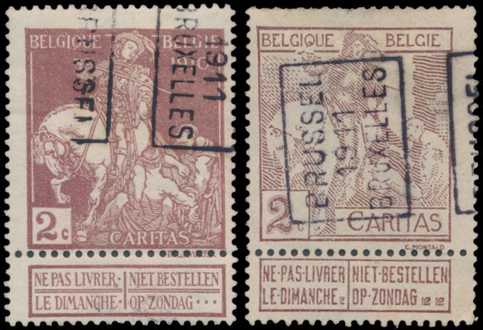 PRE 1734A (2x) "2c. Montald type lined" with hand roll stamp