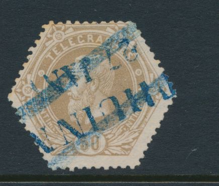 2437 0 imageTG 3 "10c. pair" with telegraph cancel in blue from Manage, vf(Image 1)